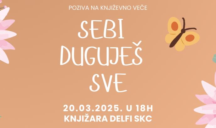 - Kroz priče i refleksije iz knjige "Sebi duguješ sve", želimo da podstaknemo žene da pronađu snagu u sebi, da ne zaborave na sopstvenu vrednost i da nauče kako da budu nežnije prema sebi u trenucima izazova. Ovo književno veče je prilika za zajedničku podršku i osnaživanje - poručuju organizatori.